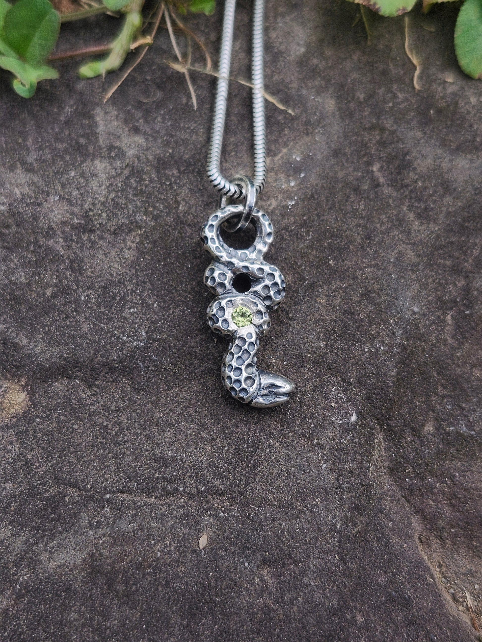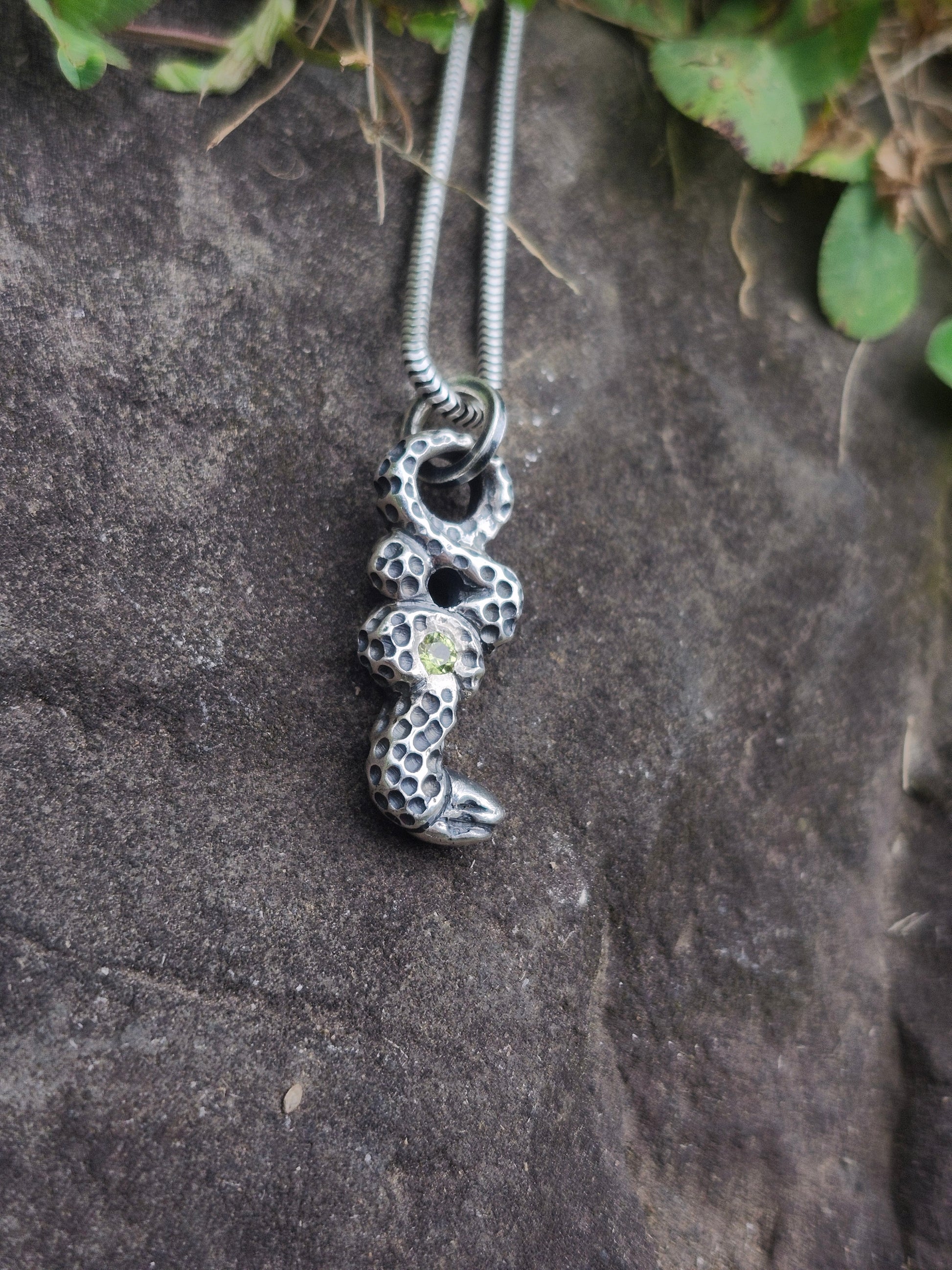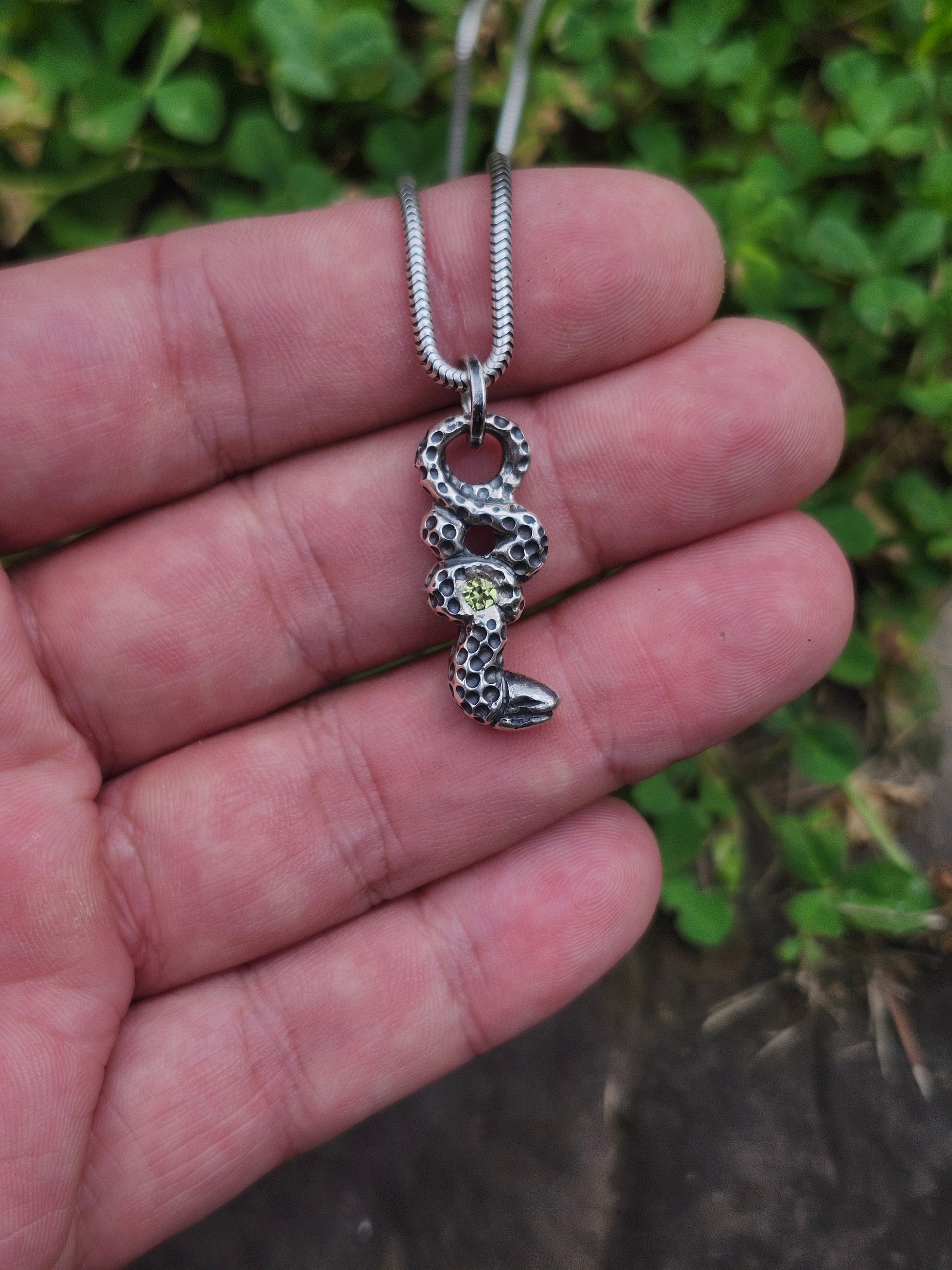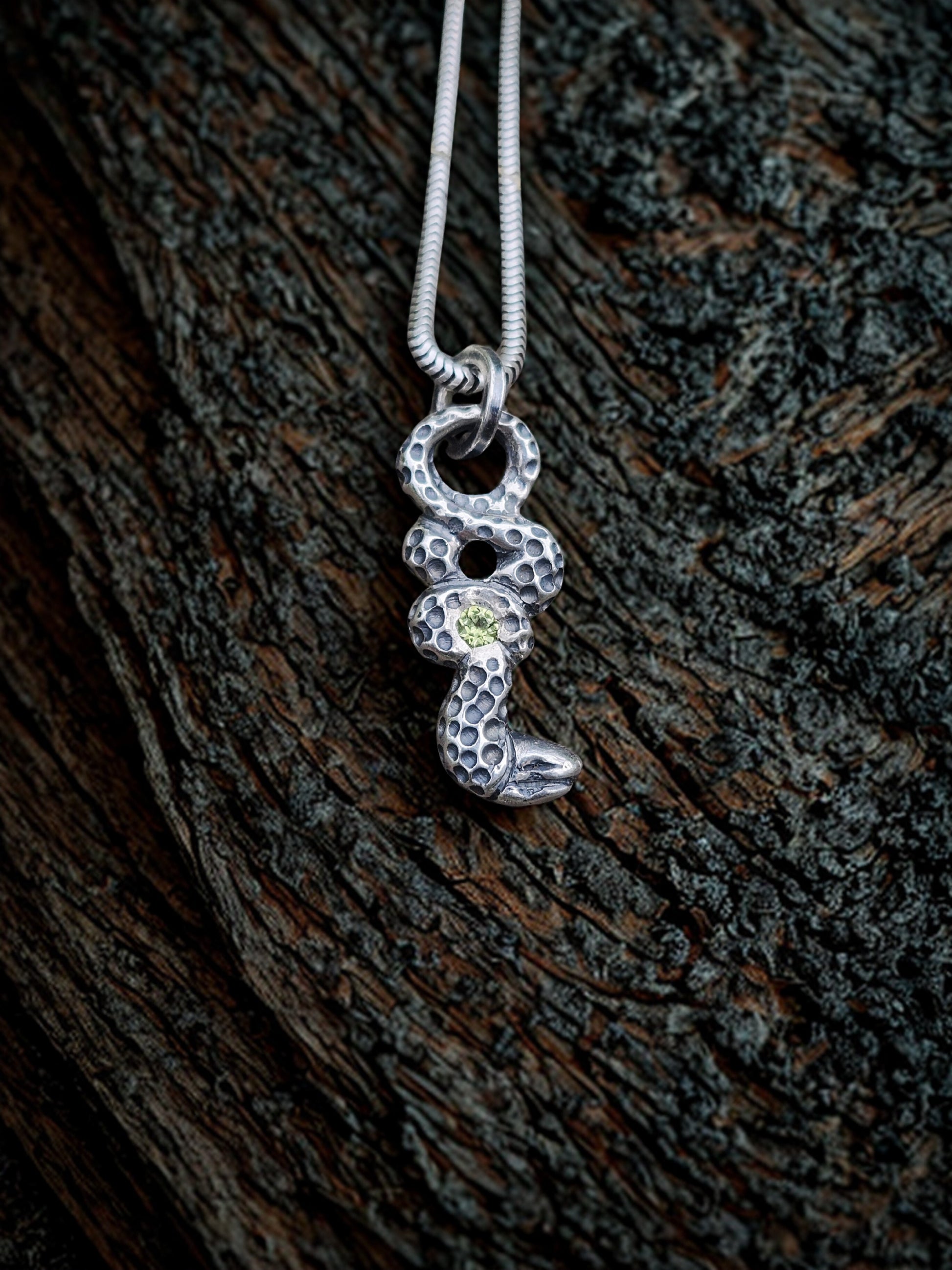 Peridot Serpent Pendant – Hand-Carved Sterling Silver Jewelry