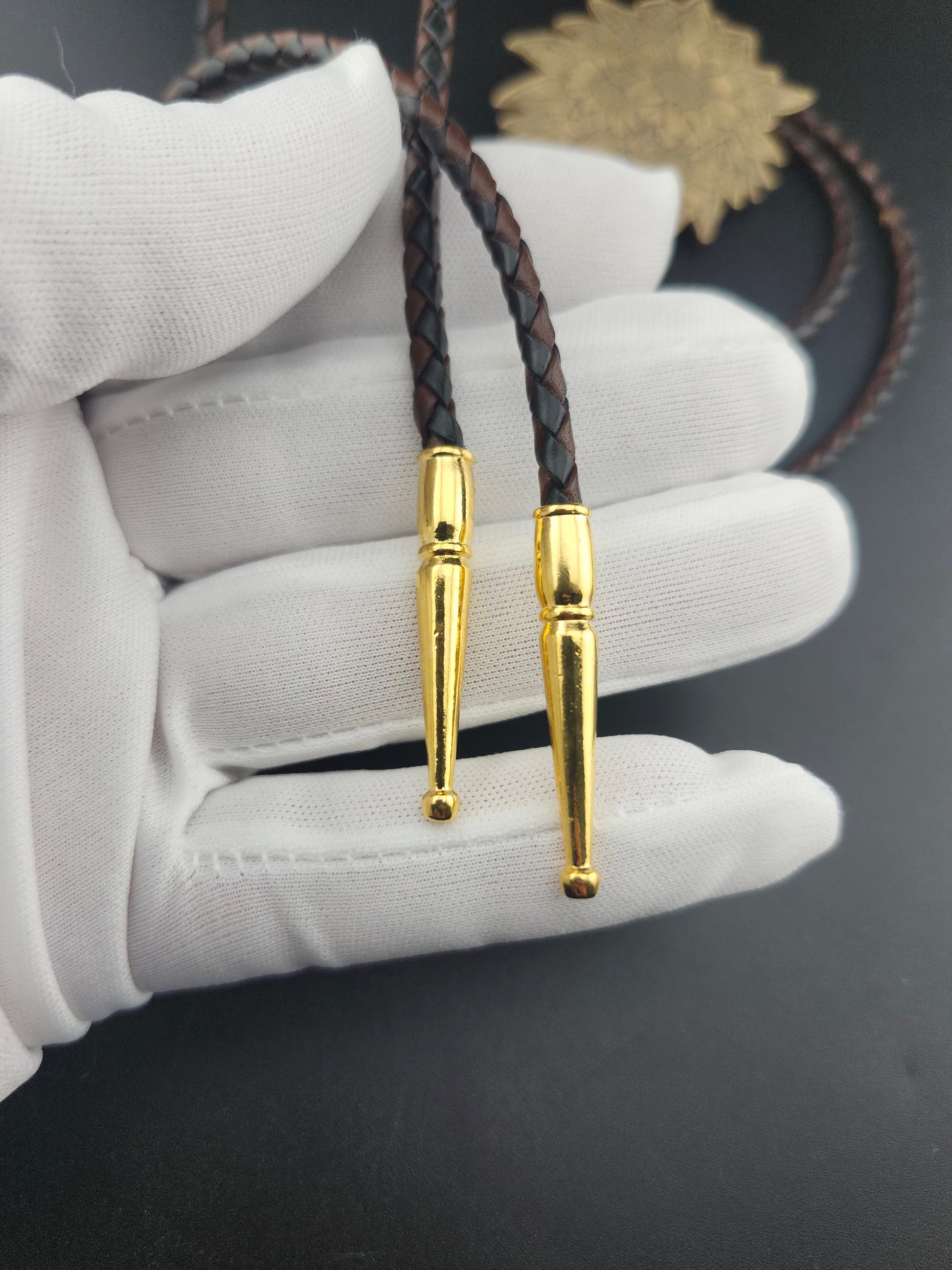 🔹 Cord: Two-tone braided leather (black/brown)