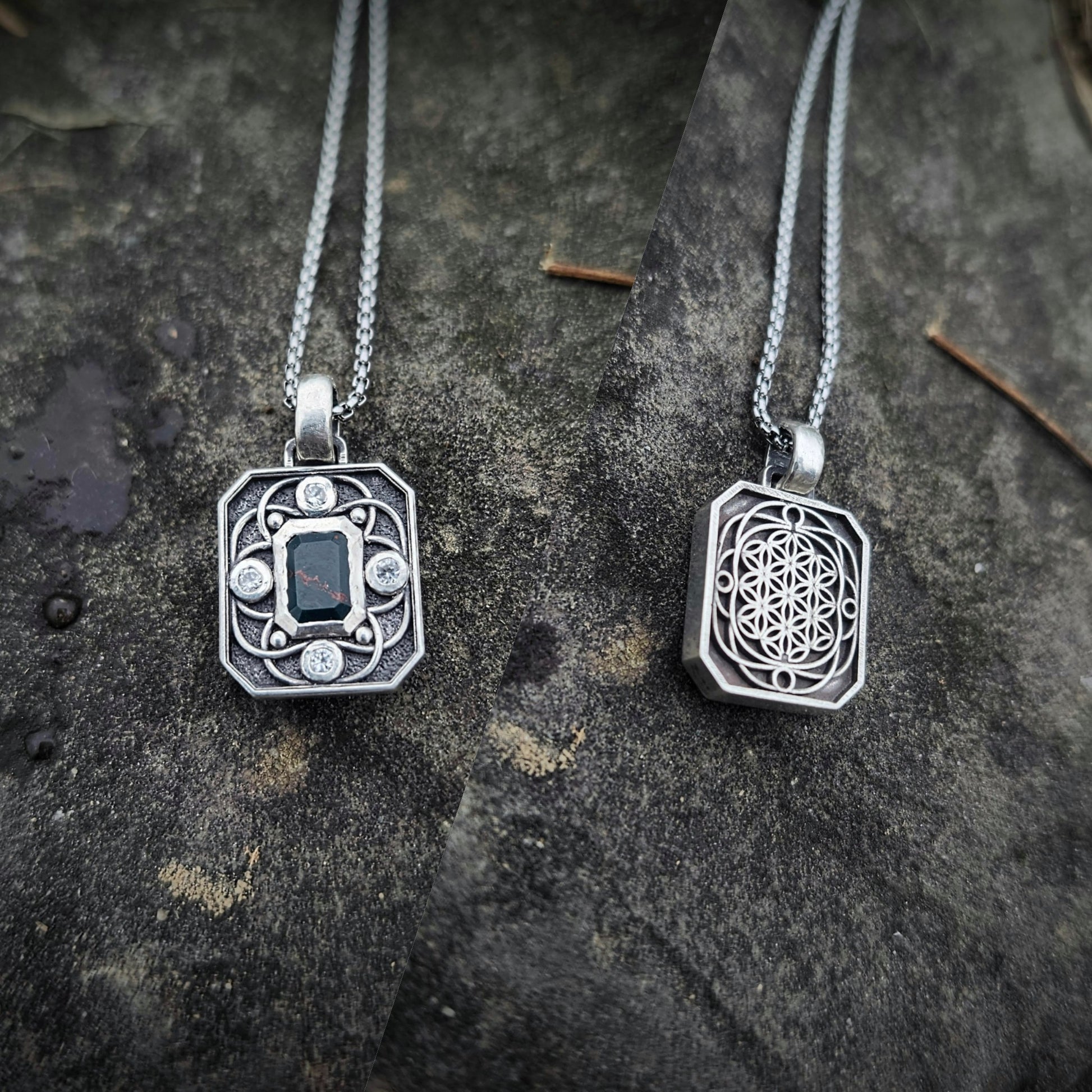 The Origin Tablet – Sterling Silver Bloodstone & Sapphire Pendant