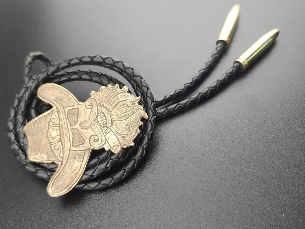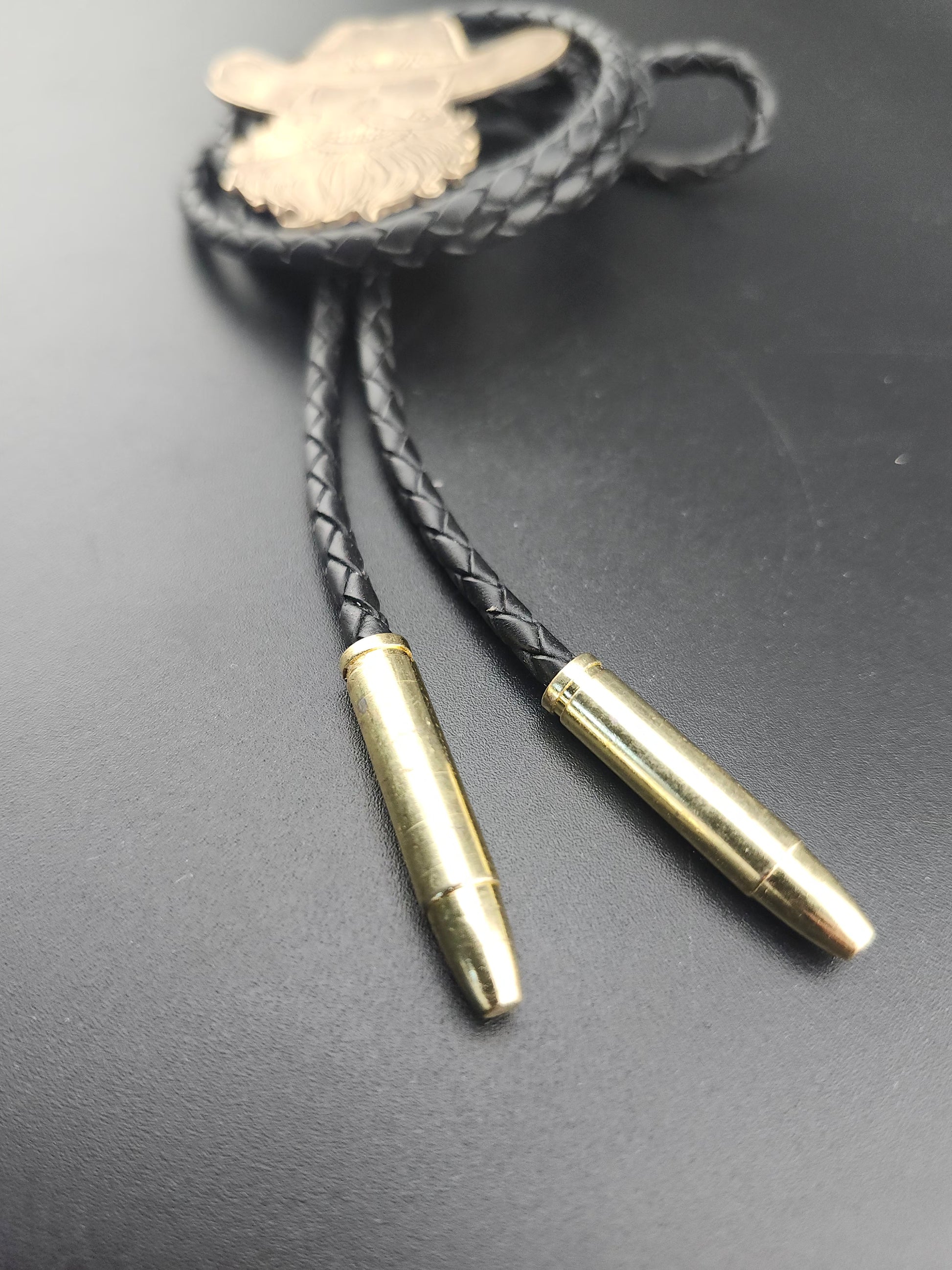 The Outlaw Bolo Tie – Hand-Engraved Brass with Bullet Tips